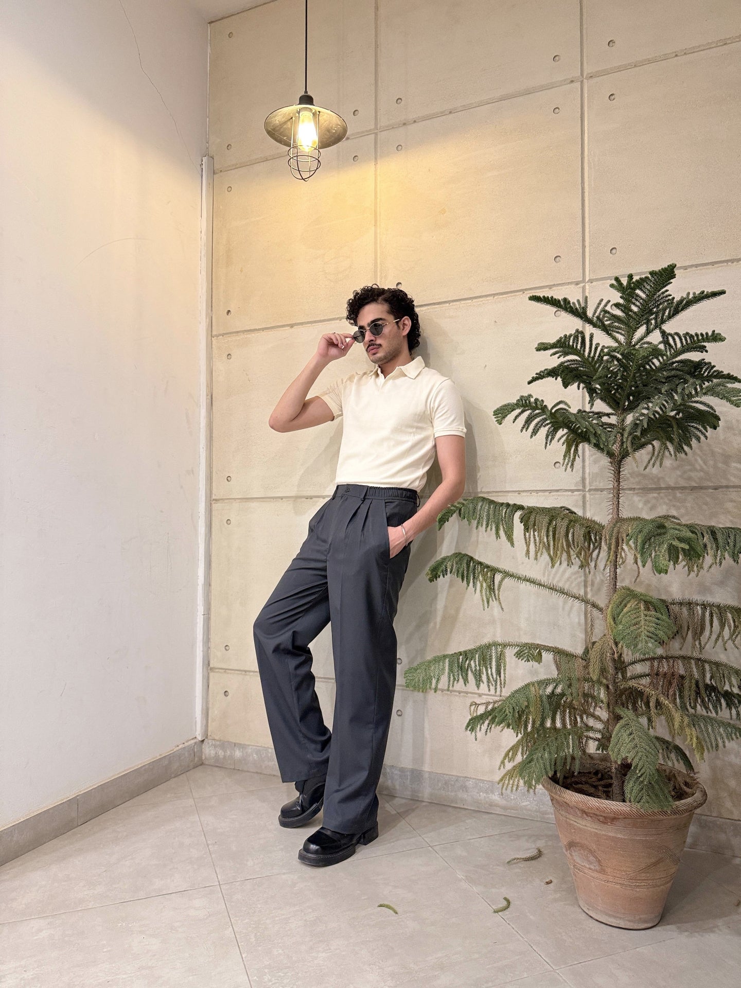 Loose-fit trousers crafted from a blend of wool & polyester. Designed with front pleats, belt loops, side pockets, and back welt pockets. Finished with a zip fly and top button fastening for a tailored yet relaxed look.